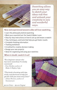 “A Weaver’s Guide to Swatching is bursting with tips, tricks, and shortcuts to help you get the cloth you want every time. If you want to be a better weaver, read this book!”