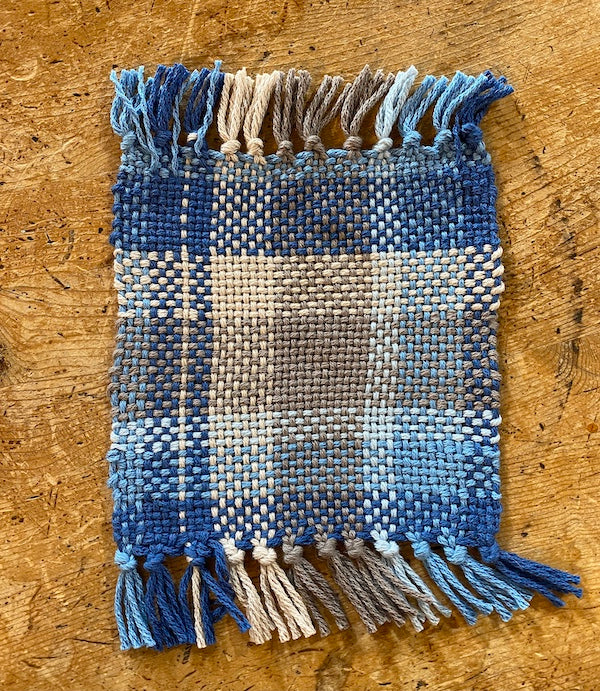 If you would like slightly cooler yarn, I suggest Brown Sheep’s Cotton Fleece. I wove the single heddle version in an alternate colorway using this yarn. (Sorry, no bundle is available.) The put-up is a little different so if you are weaving the doublewide version you will want to adjust accordingly. If weaving the single-heddle version you can buy one skein of each color and an additional skein of your chosen weft color.