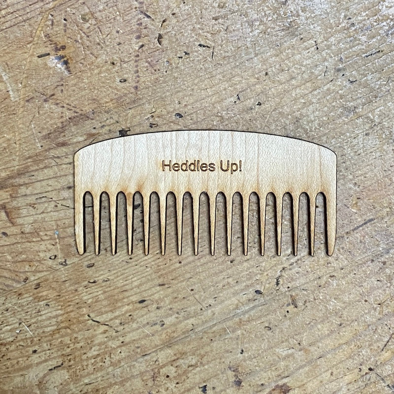 This adorably-sized comb will come in handy in all sorts of weaving situations. Wide combs produce straighter fell lines—the last placed pick—than narrow forks, they are easy to maneuver between picks if you need to make adjustment, and they provide a gentel tool for tidying fringe before finishing or trimming.