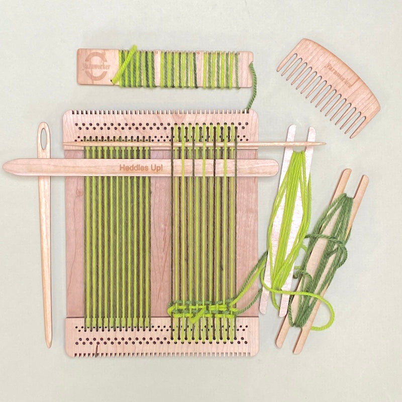 Swatch Maker Looms were created as a collaboration between Liz Gipson of Yarnworker and Angela Smith, formerly of Purl & Loop. All components (wood, needles, cotton bag project bag, instructions, etc.) are sourced from U.S. businesses and produced and assembled in the U.S. The looms and tools are packaged in recycled or recyclable materials.