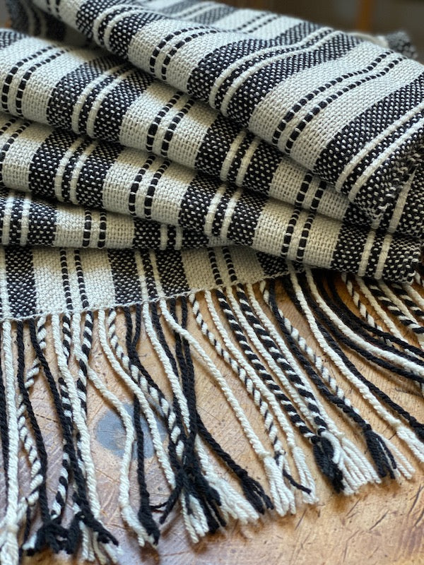 Each box focuses on a particular fiber and sett. PlayBox 1 concentrated on a variety of wools in a sett of 8 for scarves, PlayBox 2 concentrated on Cottons and Cotton Linen blends in a sett of 10 for towels, and PlayBox 3 concentrated on fine blends in a sett of 12 for wraps.
