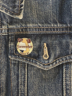 --Show your weaverly, can-do attitude with this Yarnworker logo pin. Made of hard enamel, this 1'' pin has a silver clutch closure that keeps it secure and easy to move from bag to jacket. Heddles Up!